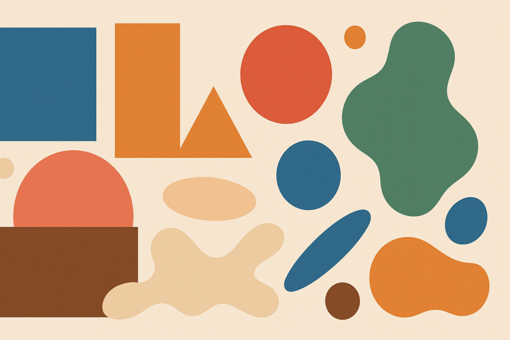 Organic shapes, also known as freeform or amorphous shapes, are irregular and asymmetric, often found in nature. They are less structured than geometric shapes and tend to evoke more natural, comfortable, and unpredictable feelings.
